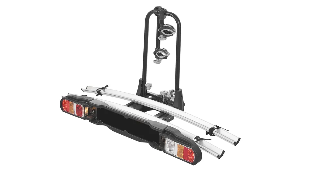 Przesuwne podstawki pod koła z systemem samoblokującym ze specjalnymi paskami zębatymi odpowiednio regulują siłę mocowania. Podstawki pod koła i paski mocujące zabezpieczą koła o średnicy opon do 2,8”.