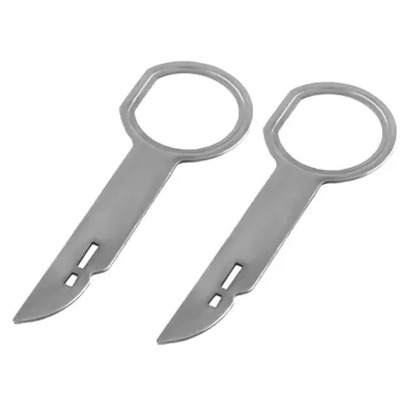 Klucze zwalniające do radia samochodowego z poziomym gniazdem zwalniającym.