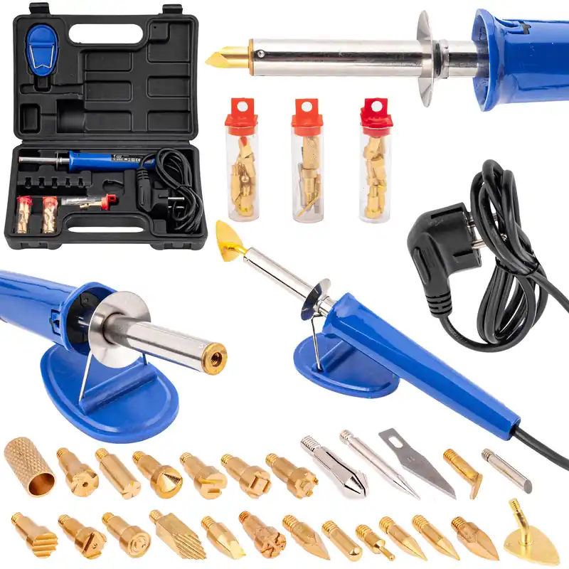 Bestseller Lutownica wypalarka do drewna skóry z grotami 23 sztuki GEKO