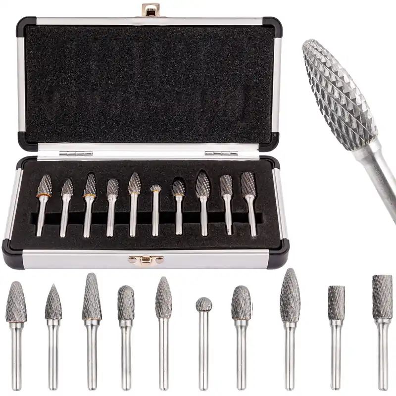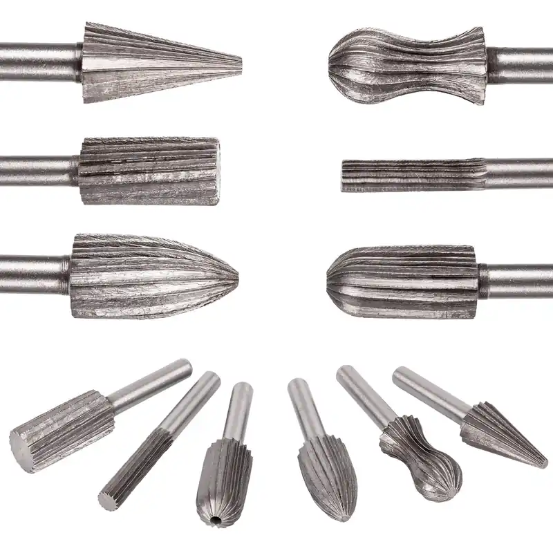 Zestaw wysokiej jakości pilników obrotowych z węglika wolframu.