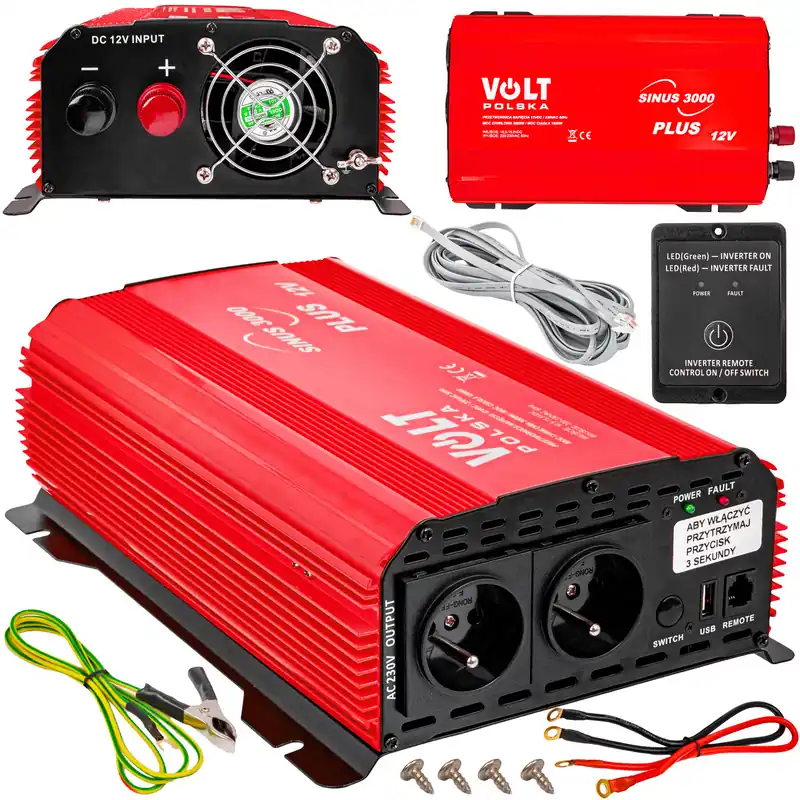 Automatycznie wykrywa napięcia akumulatora (12V lub 24V) i przetwarza je na 230V.