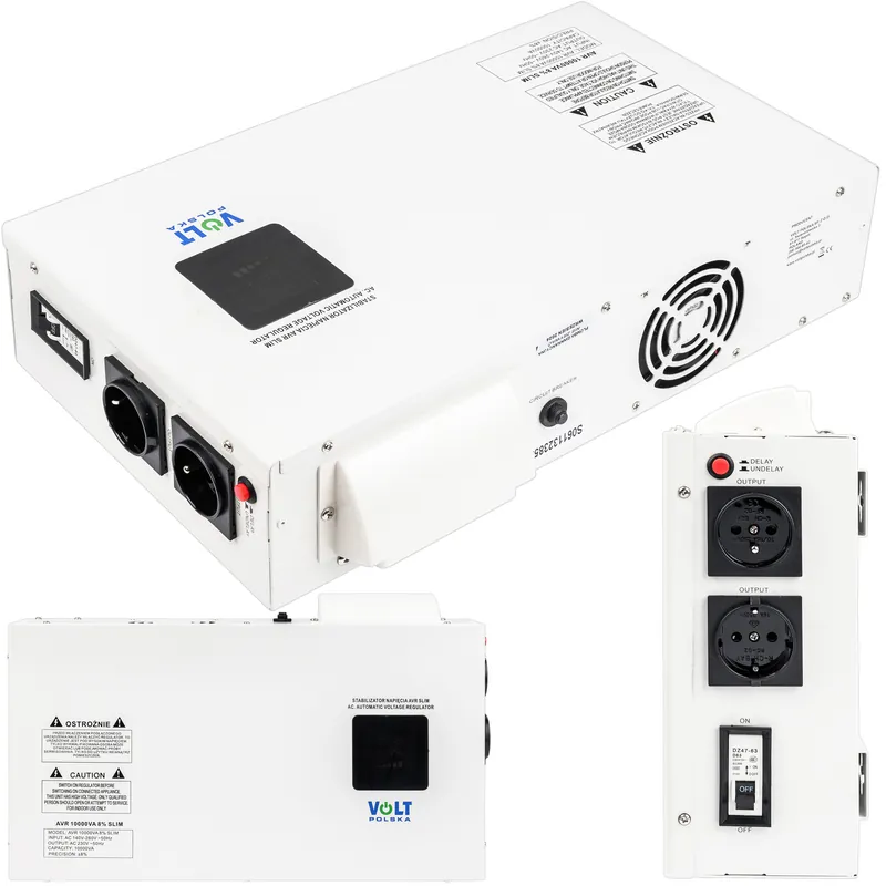 - Stabilizator łączy w sobie dwa urządzenia: regulator napięcia i urządzenie przeciwprzepięciowe.