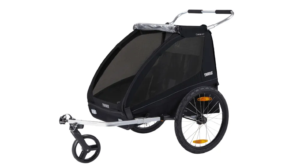 Ta przyczepka rowerowa zawiera zestaw do jazdy na rowerze i podstawowy zestaw spacerowy, regulowany uchwyti dodatkowy schowek. Dzięki łatwemu składaniu do kompaktowych rozmiarów można ją bardzo łatwo przewozić. Przyczepka Thule Coaster XT jest wyposażona w opatentowaną technologię ezHitch umożliwiającą łatwe przymocowanie jej do roweru. Idealnie sprawdzi się podczas codziennych dojazdów, jak i weekendowych rodzinnych wypraw na łono natury.