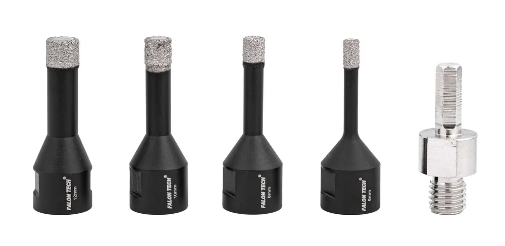 Zestaw otwornic diamentowych w rozmiarach od 6 do 12 mm.