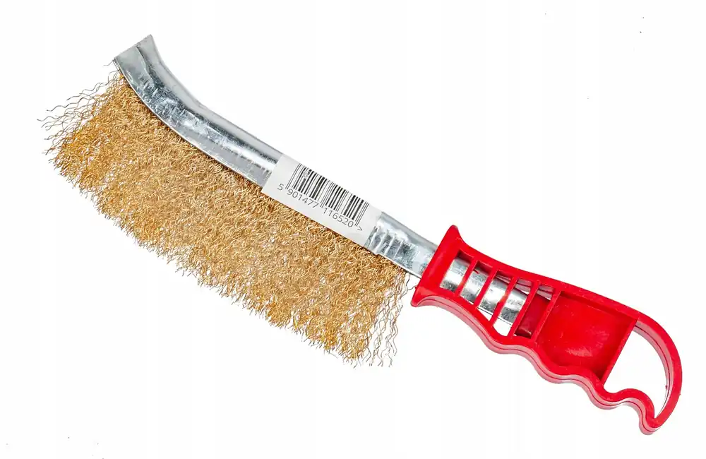 - Szczotka zbudowana jest z aluminium, w której zastosowano stalowy drut powlekany mosiądzem, stanowiący element zmiatający.