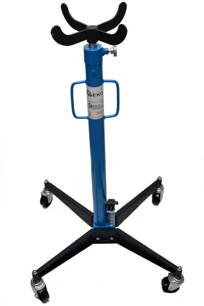 Profesjonalny podnośnik do podnoszenia skrzyni biegów lub silnika. Zapewnia szybki oraz bezpieczny demontaż lub montaż skrzyni biegów, podzespołów silnika, lub samego silnika.