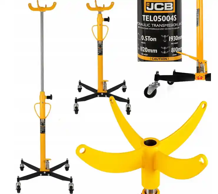 Profesjonalny podnośnik do podnoszenia skrzyni biegów lub silnika. Zapewnia szybki oraz bezpieczny demontaż lub montaż skrzyni biegów, podzespołów silnika, lub samego silnika.