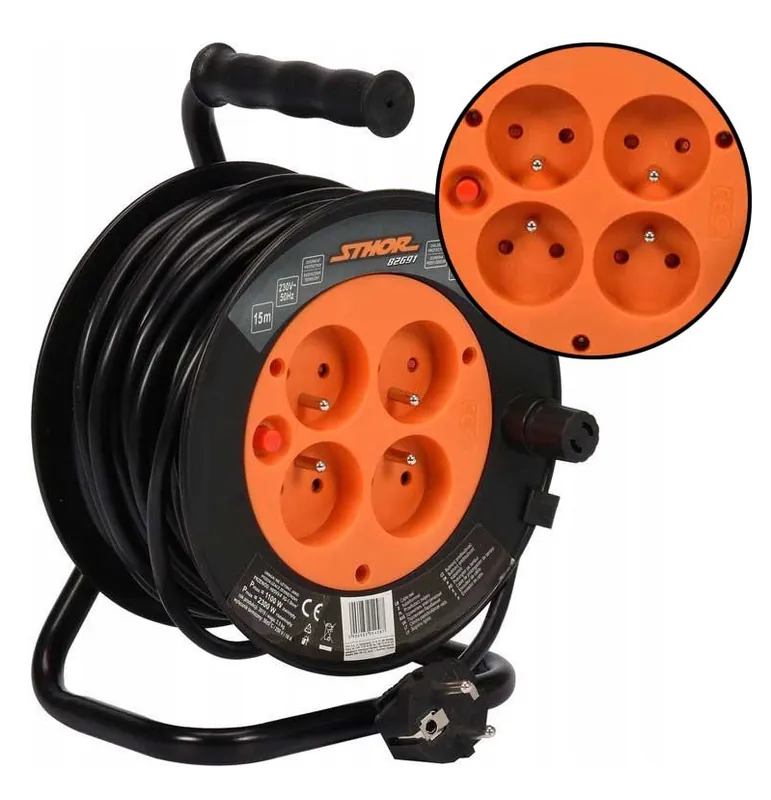 - maksymalne obciążenie: 900 W – przewód zwinięty, 2300 W – przewód rozwinięty.