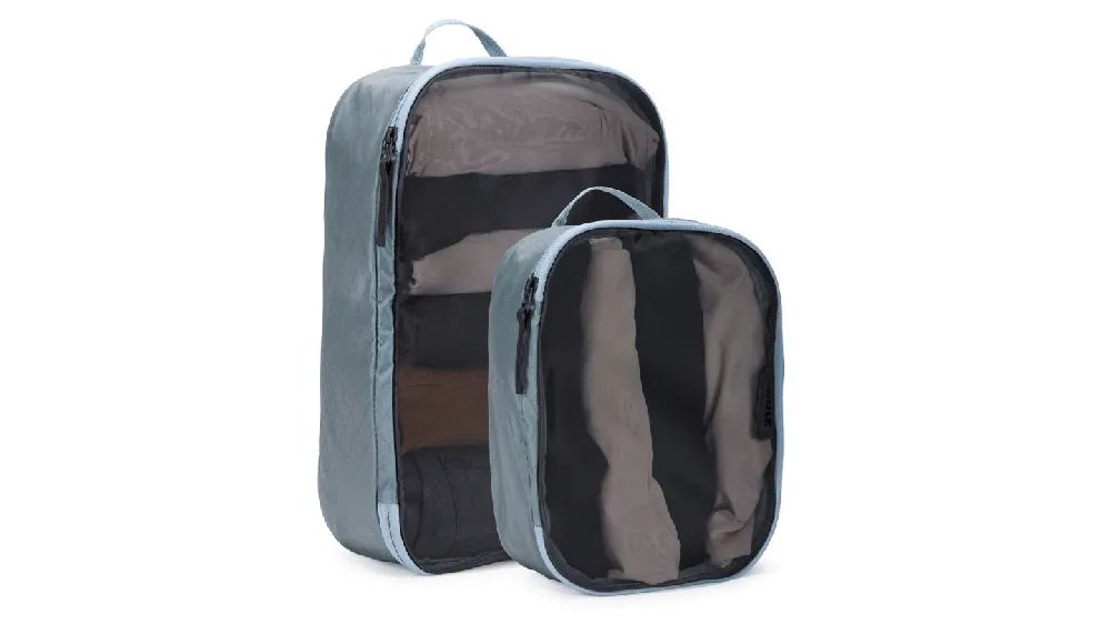 Zestaw 2 organizerów Thule zawiera średnią i małą kostkę, zaprojektowane tak, aby idealnie pasowały do bagażu podręcznego, pozostawiając trochę miejsca na inne rzeczy. Zapewnia prosty, ale skuteczny sposób na utrzymanie ubrań i niezbędnych rzeczy w porządku, a jednocześnie widocznych.