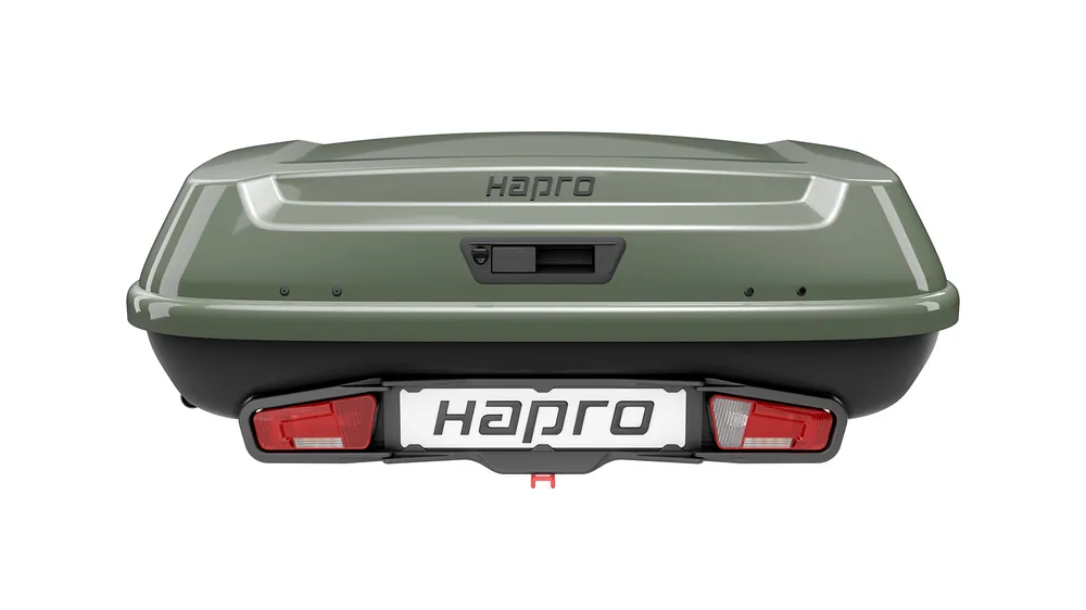 Hapro Boxer to zestaw składający się z dwóch idealnie dopasowanych elementów: boxa montowanego na haku holowniczym oraz specjalnej platformy, która zapewnia stabilność i wygodę użytkowania. Dzięki mechanizmowi Premium Grip zapewnia szybki i stabilny montaż, a funkcja odchylania (76°) umożliwia łatwy dostęp do bagażnika samochodu nawet po załadunku.