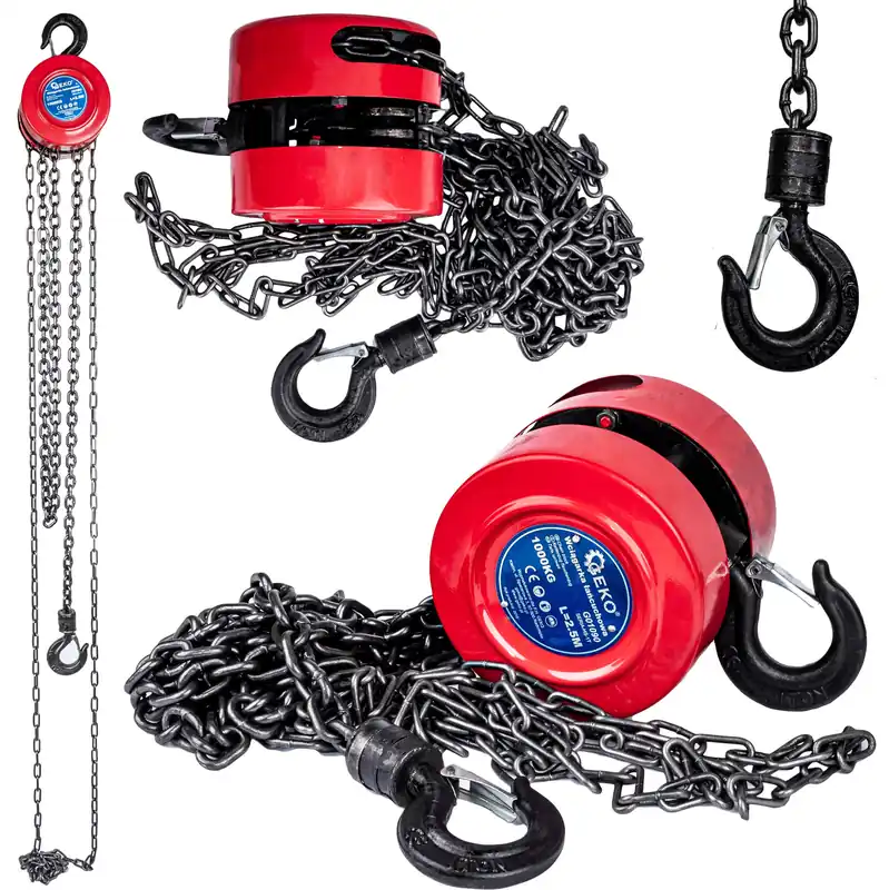 Wyciągarka łańcuchowa marki BJC posiada napęd ręczny i przekładnię, która pozwala na podniesienie ciężaru do 2000kg. Łańcuch wykonany z wysokiej jakości stali. Ogniwa łączone metodą zgrzewania oporowo-iskrowego, co gwarantuje odpowiednią jakość i wytrzymałość ogniwa. Wyciągarka wyposażona jest w bezpieczne haki posiadające blokadę uniemożliwiającą wypięcie się ładunku.