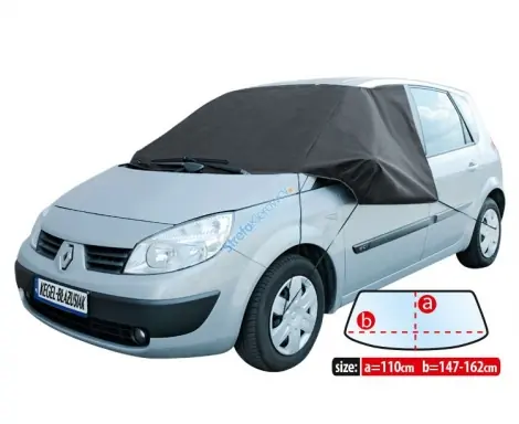 -rozmiar przedniej szyby samochodu na którą pasuj osłona: maksymalna wysokość 110 cm, szerokość od 147 do 162 cm