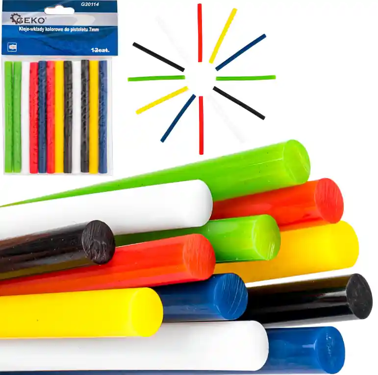 Klej na gorąco silikonowy kolorowy 11mm 12szt 10cm GEKO