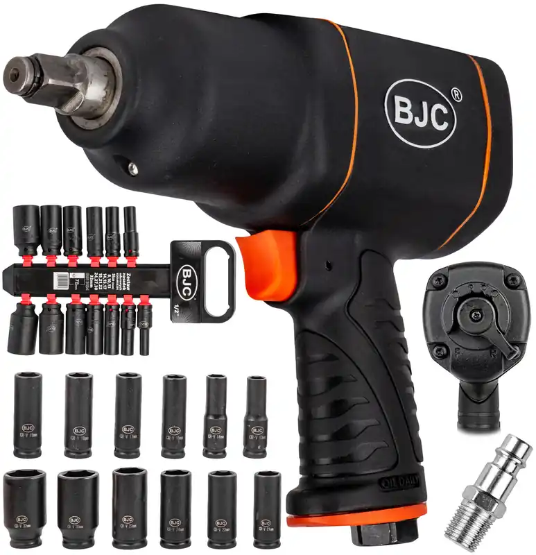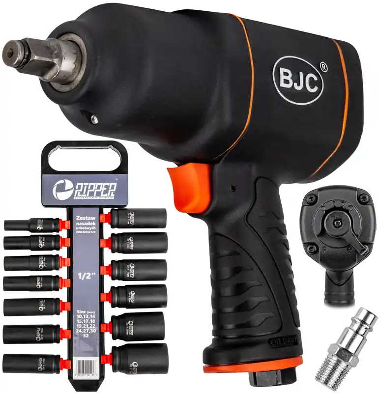KLUCZ PNEUMATYCZNY UDAROWY DO KÓŁ 1/2 MOCNY 1850NM NASADKI 8-32 ZESTAW BJC