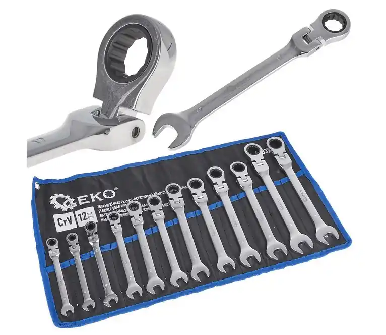 Klucze płasko oczkowe z grzechotką łamane satyna walizka 6-32 mm 22el GEKO Kup teraz