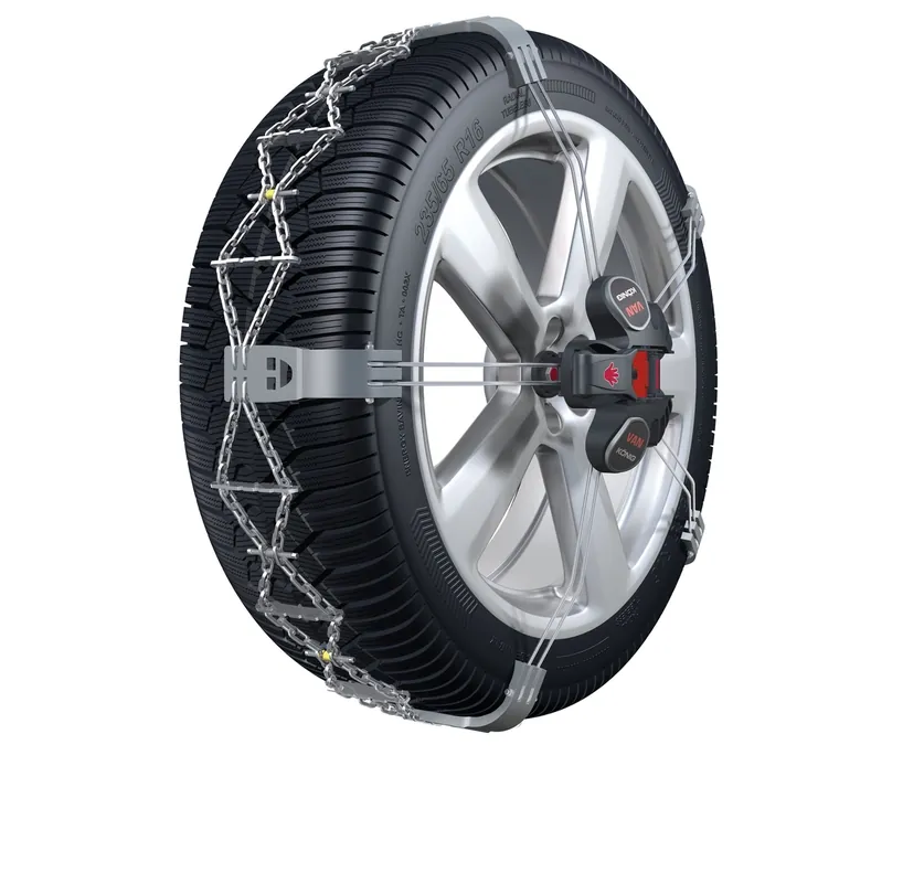 K-Summit to łańcuchy śniegowe – nakładki, które możesz zastosować we wszystkich typach samochodów osobowych, niezależnie od prześwitu pomiędzy kołem, a elementami zawieszenia lub układu hamulcowego. Są wszechstronne również pod takim względem, że można je stosować w przypadku, gdy producent wyklucza użycie tradycyjnych łańcuchów (nawet tych z ogniwem 7 mm) z uwagi na ryzyko uszkodzenia czujników ABS i ESP lub nadkola.
