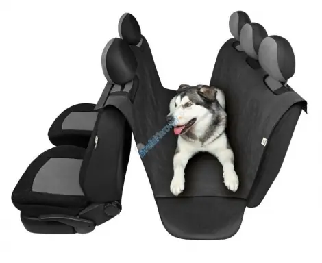 Pokrowiec jest wykonany z mocnej, trudnej do przebicia włókniny, która jest antyalergiczna i bezzapachowa. Materiał jest trudno-przepuszczalny, co znaczy, że w bardzo dużym stopniu jest odporny na wchłanianie płynów i zapachów. Dzięki tej właściwości tapicerka samochodu jest naprawdę dobrze chroniona, a sam pokrowiec nie jest łatwy do uszkodzenia. Duża powierzchnia materiału wraz z dwiema bocznymi osłonami ochroni zarówno tapicerkę kanapy jak i jej boki, które także narażone są na uszkodzenia, zwłaszcza podczas wchodzenia psa do samochodu. Pokrowiec dobrze dopasowuje się do siedzenia i układa się w pewnego rodzaju hamak, chroniący psa przed potłuczeniami i obrażeniami, na które narażony jest podczas podróży. Zasłonięcie przestrzeni pomiędzy przednimi fotelami skutecznie zniechęca psa do przeskakiwania na przednie fotele, co zapewnia bezpieczeństwo zarówno Twojemu pupilowi jak i Tobie. Ciemna kolorystyka pokrowca, sprawia, że produkt idealnie dopasuje się do wnętrza każdego samochodu.