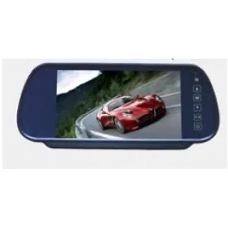 wyświetlacz w lusterku wstecznym 7” montowany jako nakładka na oryginalne lusterko, pilot, 12V, sterujący panel dotykowy, dwa wejścia video, wymiary: 249x109x23 mm, rozdzielczość 480×360 px, wzbudzanie obrazu po wstecznym biegu, rotacja obrazu