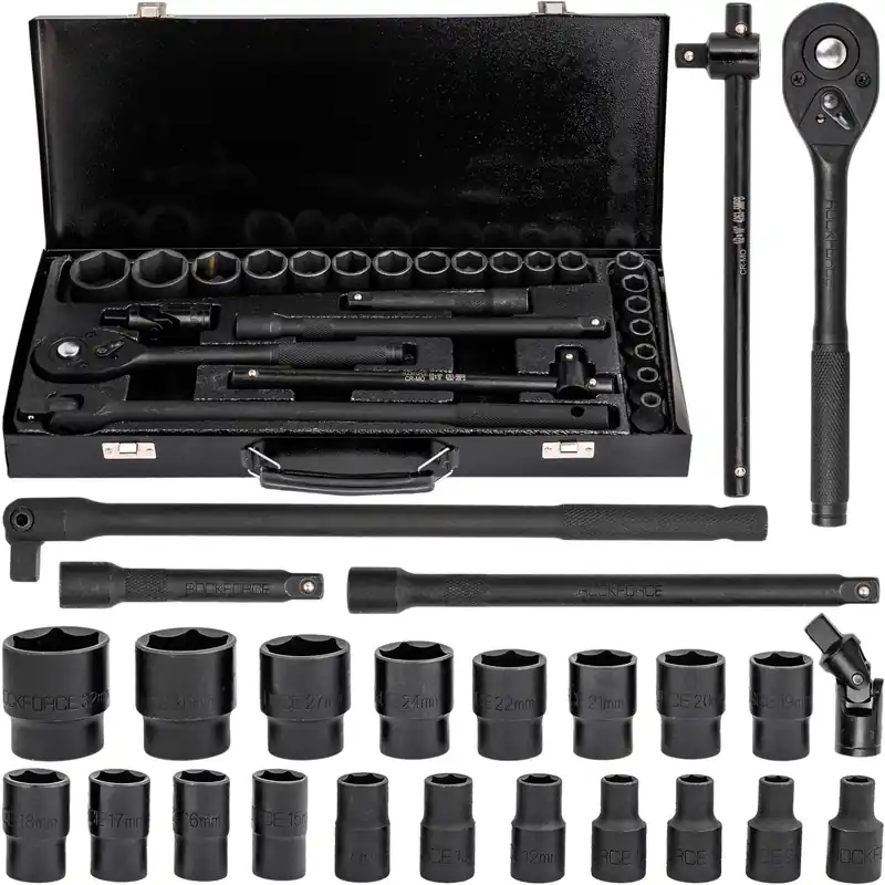 KLUCZE NASADOWE NASADKI GRZECHOTKA ZESTAW 1/2″ 25EL 8-32MM WALIZKA METALOWA FORSAGE