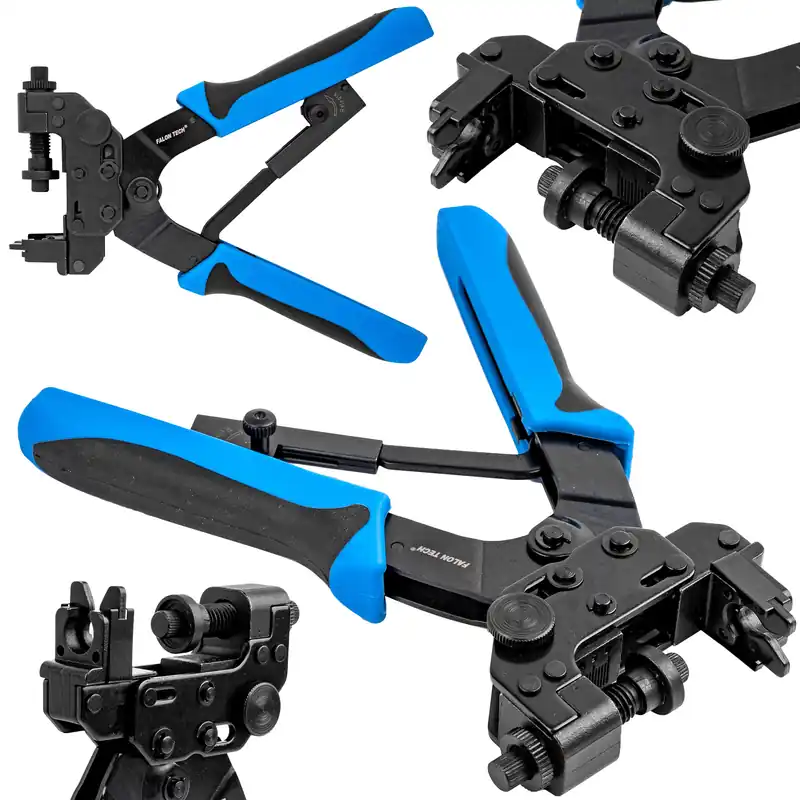 Głowica obrotowa 360° umożliwia pracę w trudno dostępnych miejscach, natomiast teleskopowe rękojeści umożliwiające wydłużenie ich z 57 cm do 80 cm, zmniejszając w ten sposób siłę konieczną do zakucia złączki.