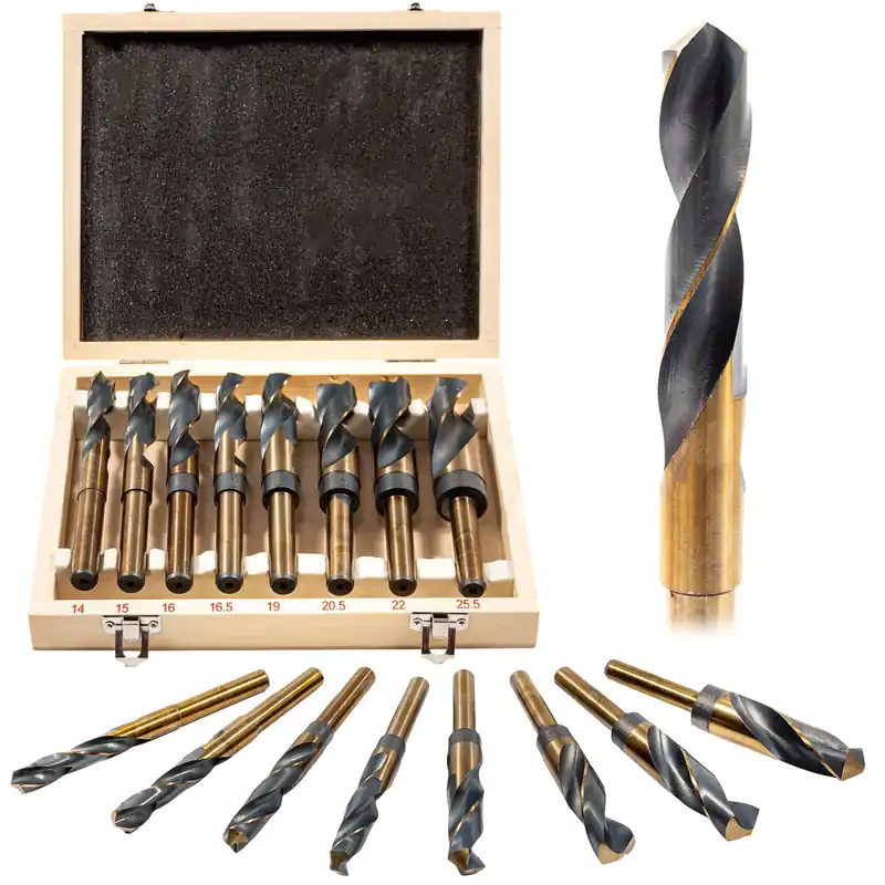 - Zestaw zawiera 8 wierteł w rozmiarach: 14, 15, 16, 16.5, 19, 20.5, 22, 25.5 mm