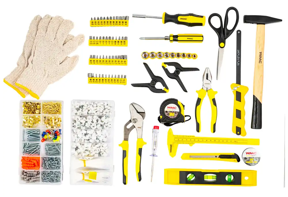 Funkcjonalny zestawy narzędziowy zawierający najbardziej przydatne narzędzia, niezbędne w każdym domu lub warsztacie.