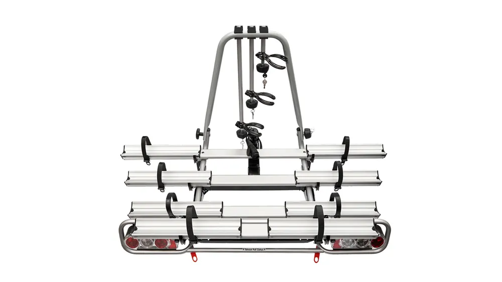 - zamki zabezpieczające rowery i samą platformę na haku holowniczym