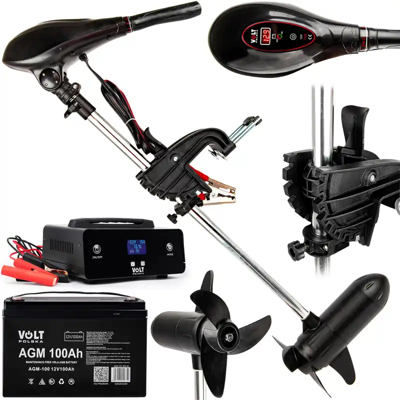 Ostatnie sztuki Silnik zaburtowy elektryczny 770W 70LBS z akumulatorem 100AH i prostownikiem 15A VOLT POLSKA