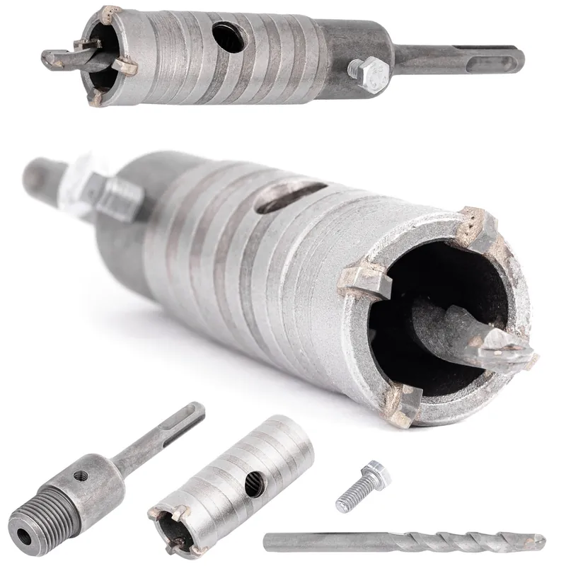 Każdy frez posiada przedłużkę, która umożliwia mocowanie zarówno w uchwycie SDS PLUS jak i standardowej głowicy zaciskowej w każdej wiertarce.
