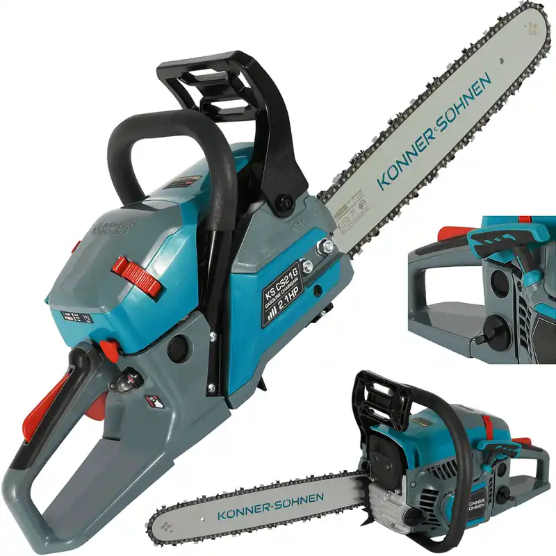 Ergonomiczne wzornictwo i niska waga zapewniają komfortową pracę nawet przy długotrwałym użytkowaniu. Uczyń swoją pracę przyjemniejszą z pilarką spalinową Könner & Söhnen!