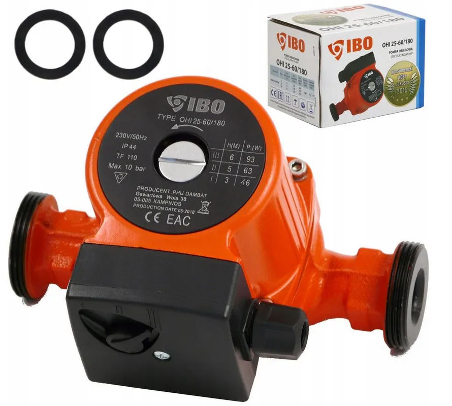 POMPA CYRKULACYJNA OBIEGOWA DO PIECA C.O. OHI 25-40/180 PRO IBO POMPY + ŚRUBUNKI DO INSTALACJI C.O.