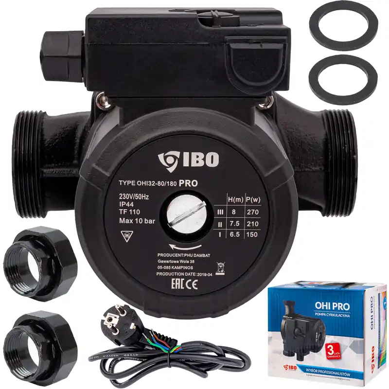 POMPA CYRKULACYJNA OBIEGOWA DO PIECA C.O. OHI PRO 25-80/180 Z WAŁKIEM CERAMICZNYM + ŚRUBUNKI IBO