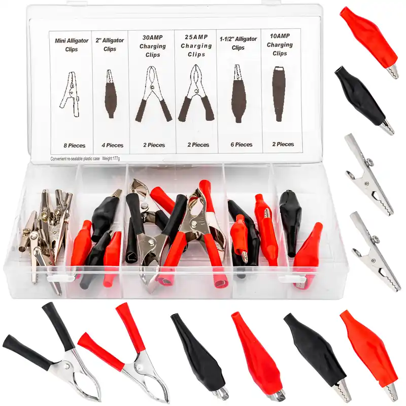 Praktyczny zestaw uniwersalnych krokodylków, klem i złączy.