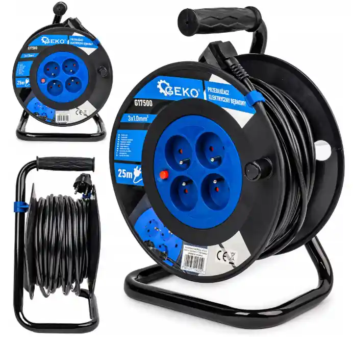Przedłużacz elektryczny na zwijaczu renomowanej marki narzędziowej GEKO.
