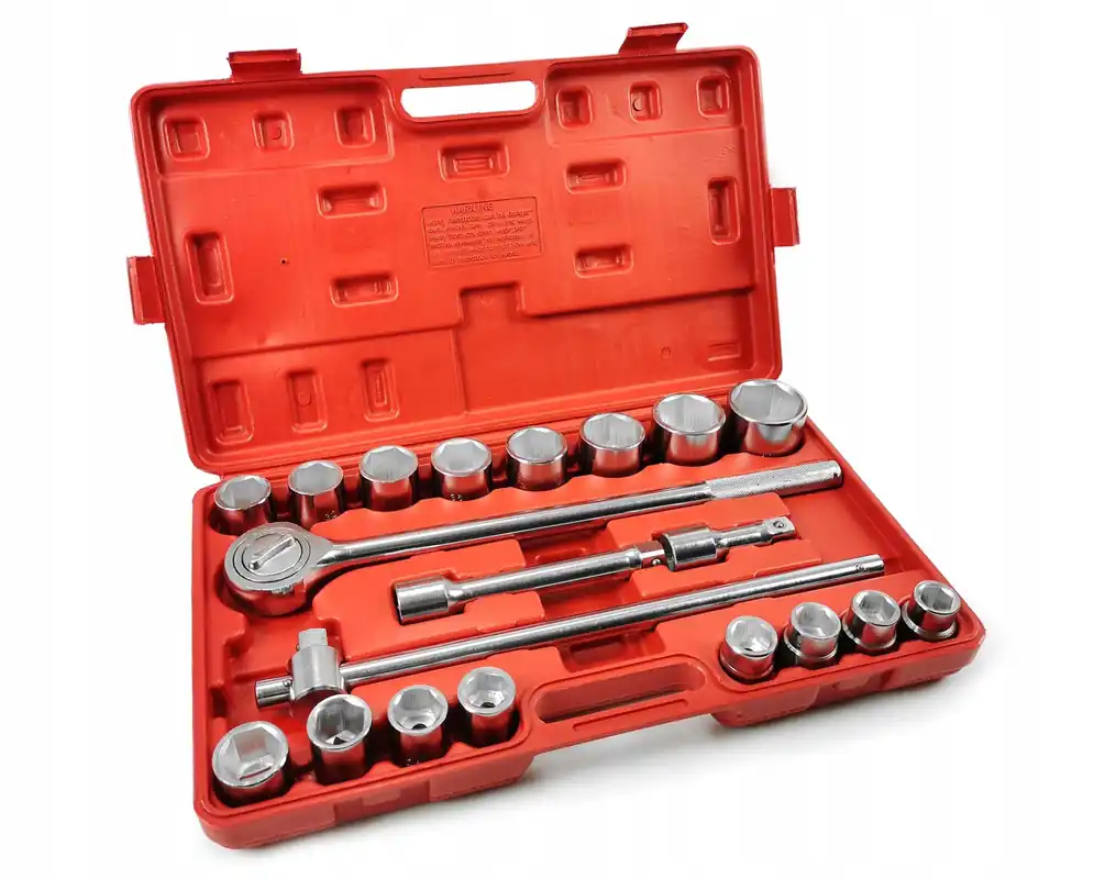 - Klucze nasadowe 3/4″: 19, 21, 22, 23, 24, 26, 27, 29, 30, 32, 35, 36, 38, 41, 46, 50 mm
