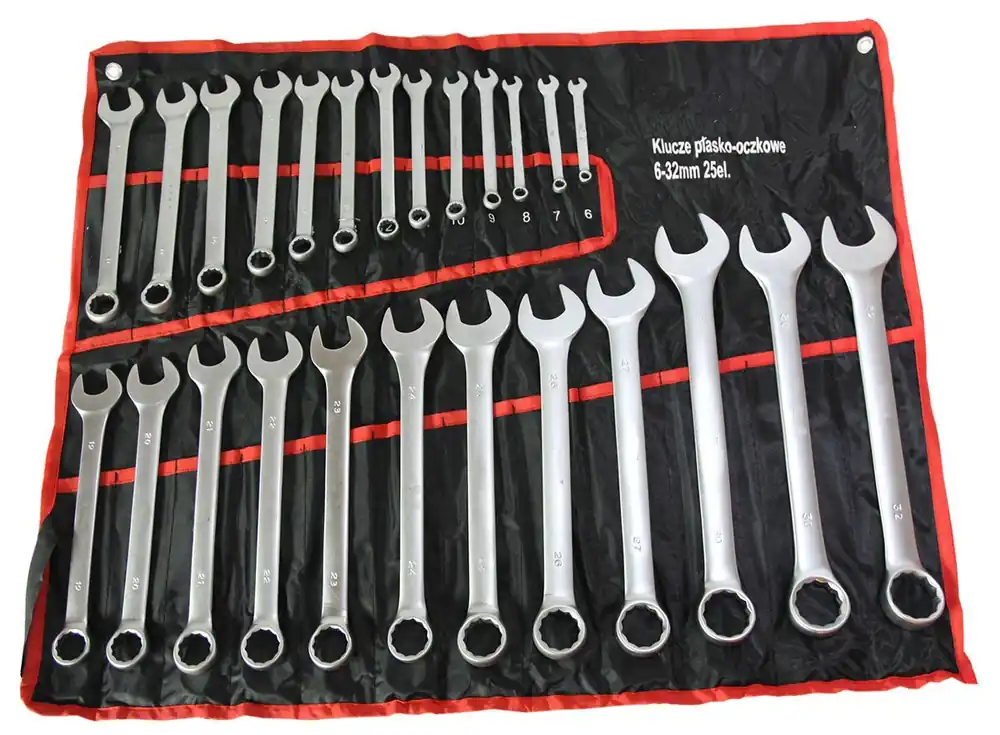 Uniwersalny zestaw kluczy płasko-oczkowych został wykonany z wysokiej jakości stali chromowo-wanadowej (Cr-V), która zapobiega korozji i uszkodzeniom mechanicznym.