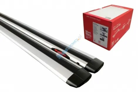 Bagażniki Mont Blanc linii AMC to ekonomiczne bagażniki o dobrej jakości wykonania i dopasowania. Prezentowany zestaw składa się ze stóp dopasowanych do danego samochodu oraz belek stalowych o prostokątnym przekroju. W ofercie dostępne są także zestawy z belkami aluminiowymi owalnymi oraz z belkami aluminiowymi kształcie skrzydła. Bagażnik w standardzie posiada zamek, który zabezpiecza bagażnik przed kradzieżą.