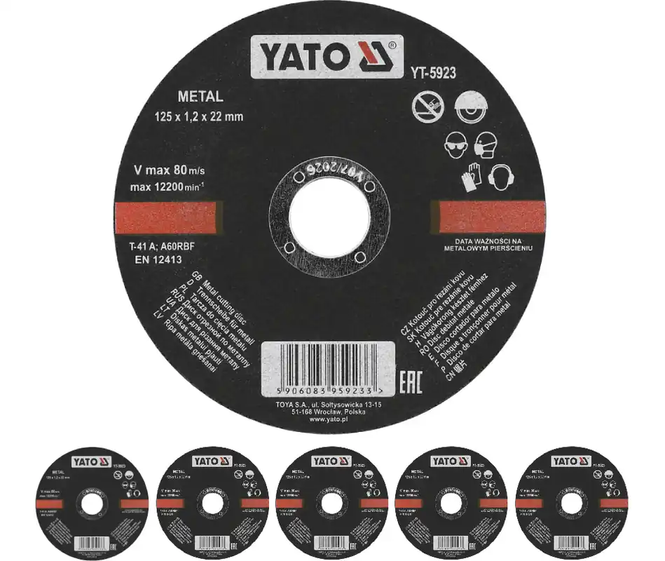 TARCZE TARCZA DO CIĘCIA METALU STALI INOX 125 x 1,2 mm ZESTAW 5 SZTUK YATO