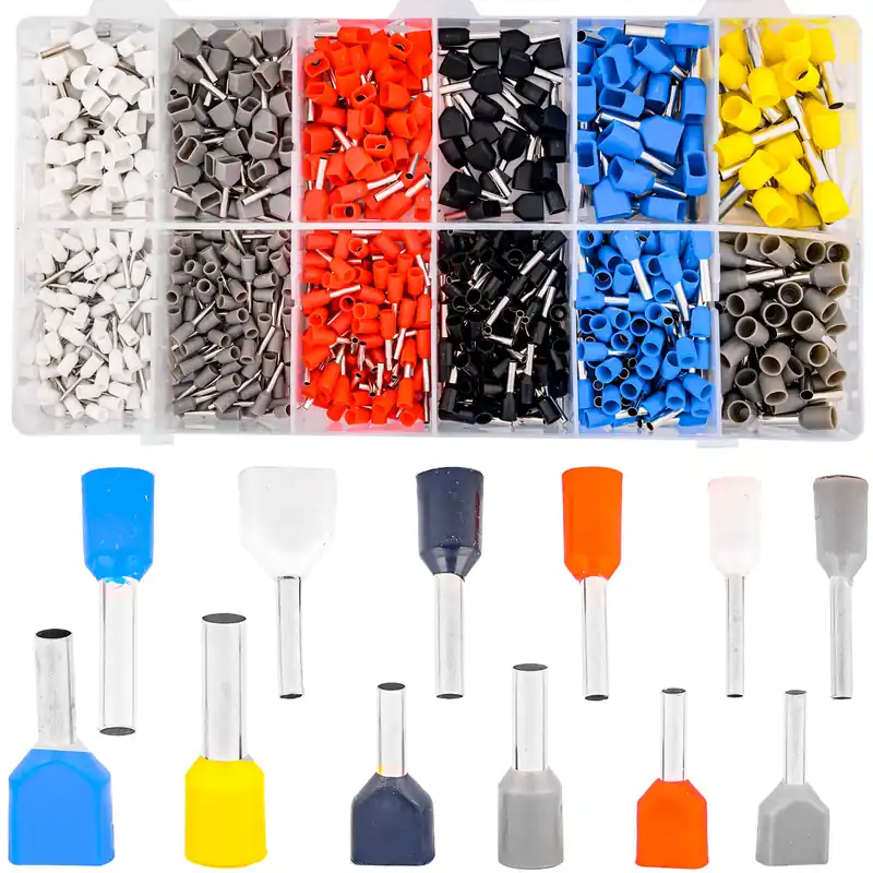 Zestaw wysokiej jakości tulejek izolowanych do zakańczania kabli.
