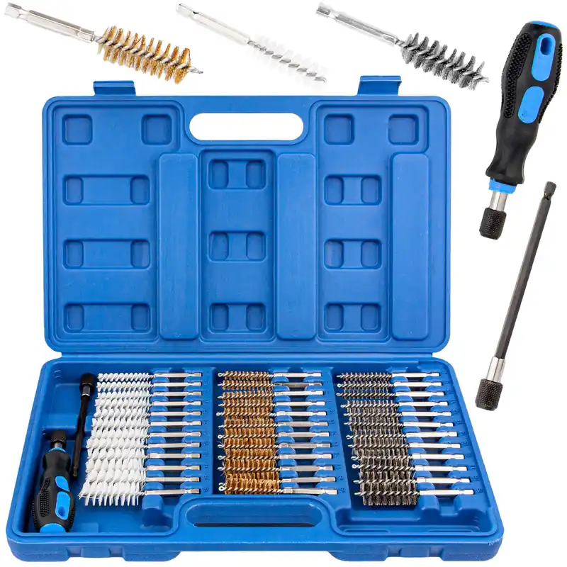 W komplecie jest przedłużka i uchwyt. 38 szczotek do czyszczenia o rożnej twardości.
