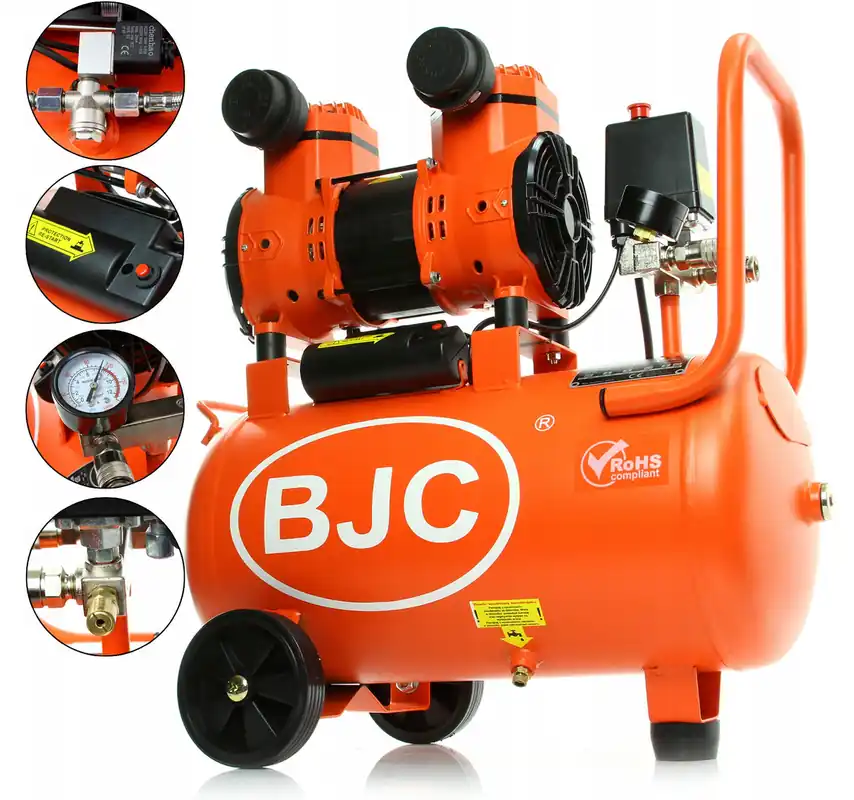 Wyciszony kompresor bezolejowy BJC® ze zbiornikiem 24L to urządzenie wszechstronne, ekonomiczne i łatwe w użyciu.