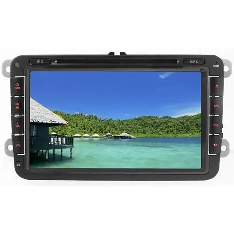 VM081 Radio 2 DIN +DVD+NAV+BLUETOOTH BEZ MAPYWith – display climatronic/parking sensorsSEAT LEON 11> – ALTEA 11>SKODA FABIA 07> – ROOMSTER 07> – OCTAVIA 07>VOLKSWAGEN CADDY 10> – GOLF V – GOLF VI – MAGGIOLINO – PASSAT 05> – PASSAT CC 08> – POLO 09>SCIROCCO 08> – SHARAN 10> – TIGUAN – TOURANMonitor TFT/LCD Wide Screen 8”Touch screen with sliding graphic interfaceHigh brightness resolution display 800x480Illumination keys red colourNavigation maps optional NV995Dual Zone (A/V) radio and navigation front – other sources rearDual Zone (Navi) navigation or source front – same sources rearColour system NTSC/PALConforming to 16:9, 4:3 letter box and 4:3 PAN SCANCapture images to display as screen saver and backgroundOn screen display functions (OSD)Multiple language menu, subtitle and audio on DVDPlaylist iPod/iPhone 4S with Playlist ControlStreaming audio Bluetooth A2DPPhone-Book downloadBluetooth calling on GPS navigationSteering-wheel commandsDiversity aerial connectionFM-AM-RDS-EON tuner with adjustable sensitivity18 + 12 AM memory stationsLast position memory functionElectronic shock protection system1 Rear multimedia USB port1 Multimedia SD-Card slot 8 gb max1 Micro SD-Card slot for navigation4+1 Pre audio output4 Audio amplified output 45 W MAX2 Video output2 Audio input1 video inputExternal microphoneRemote control with full functionsPower switching us original car-radioParking sensors Climatronic and Parking sensorsTension stabilizerInjection Key timerCompatibility DVD, VCD, CD, MP3, MPEG4, AVI, CD-R/WMA, JPEG