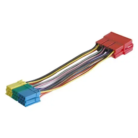 Rozdzielacz Mini ISO do wtyczek zielona żółta Audi Seat Skoda VWW wielu samochodach 20-pinowy blok mini ISO stanowi jedną całość i nie daje się rozdzielić. Do podłączenia np. zmieniarki CD potrzebny jest rozdzielacz. Dzięki niemu otrzymują Państwo wolne gniazdo na niebieska wtyczkę mini-ISO.Nie muszą Państwo także obchodzić się bez pozostałych funkcji swojego radia ani żmudnie przepinać pinów, co jest trudne do wykonania bez specjalistycznej wiedzy. Rozdzielacz naturalnie może służyć jak o przedłużka.Długość kabla wynosi ok. 20cm.