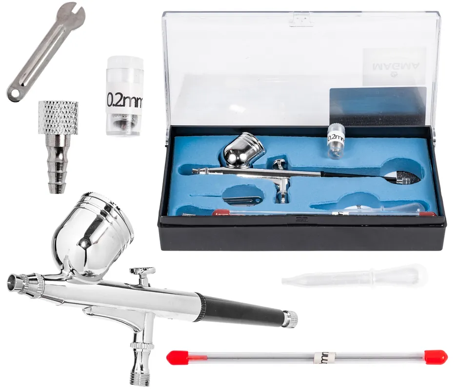 Aerograf pistolet lakierniczy z 2 dyszami (0,2 i 0,3 mm)
