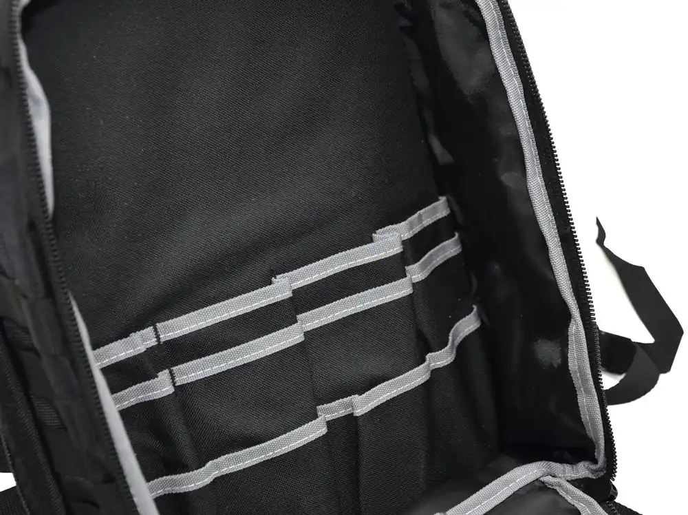 - Plecak wyposażony jest w 4 zewnętrzne i 18 wewnętrznych kieszeni na narzędzia ułatwiających przechowywanie transport.