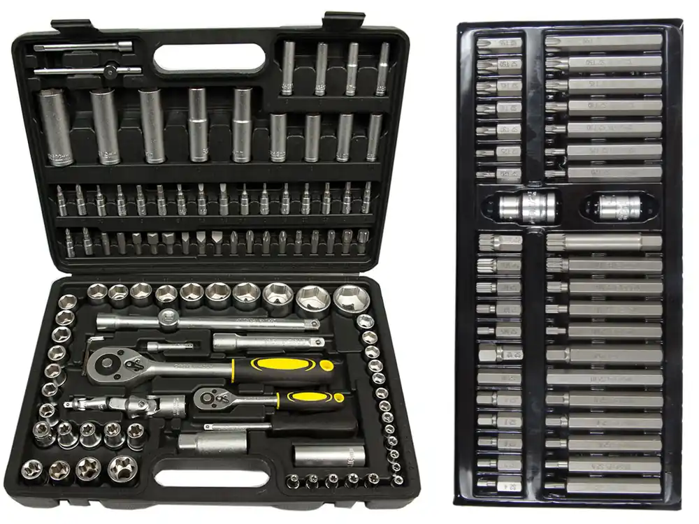 Zestaw kluczy 108 el. jest zapakowany w praktyczną miękką walizkę. Nasadki odznaczają się doskonałą wytrzymałością mechaniczną, oraz dużą odpornością na ścieranie, grzechotki posiadają mocne zębate mechanizmy. Pełen pakiet nasadek zapewni doskonałe dopasowanie klucza do danej potrzeby w każdym miejscu pracy. Znakomite klucze dla amatorów jak i profesjonalistów, wykonane z materiału CHROMO-VANADOWEGO, który zapewnia wysoką jakość oraz wytrzymałość na ścieranie.