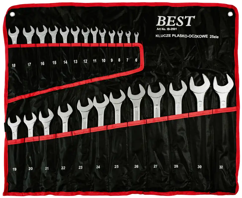 ZESTAW KLUCZY PŁASKO-OCZKOWYCH 6-32MM KLUCZE 17 ELEM. + PŁACHTA CRV GERMANY SILVER