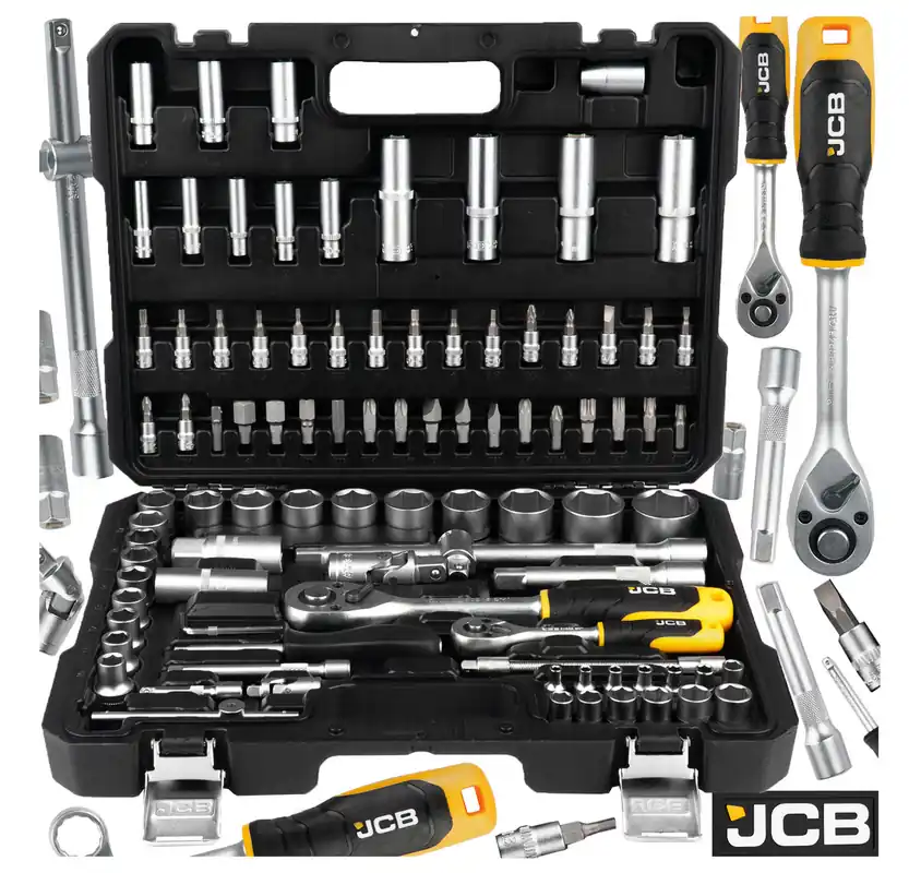 W odróżnieniu od tanich zestawów kluczy, elementy w zestawie JCB nie wypadają ze swoich miejsc a zapięcia mocno trzymają złożoną walizkę i uniemożliwiają przypadkowe jej otwarcie np. w bagażniku.