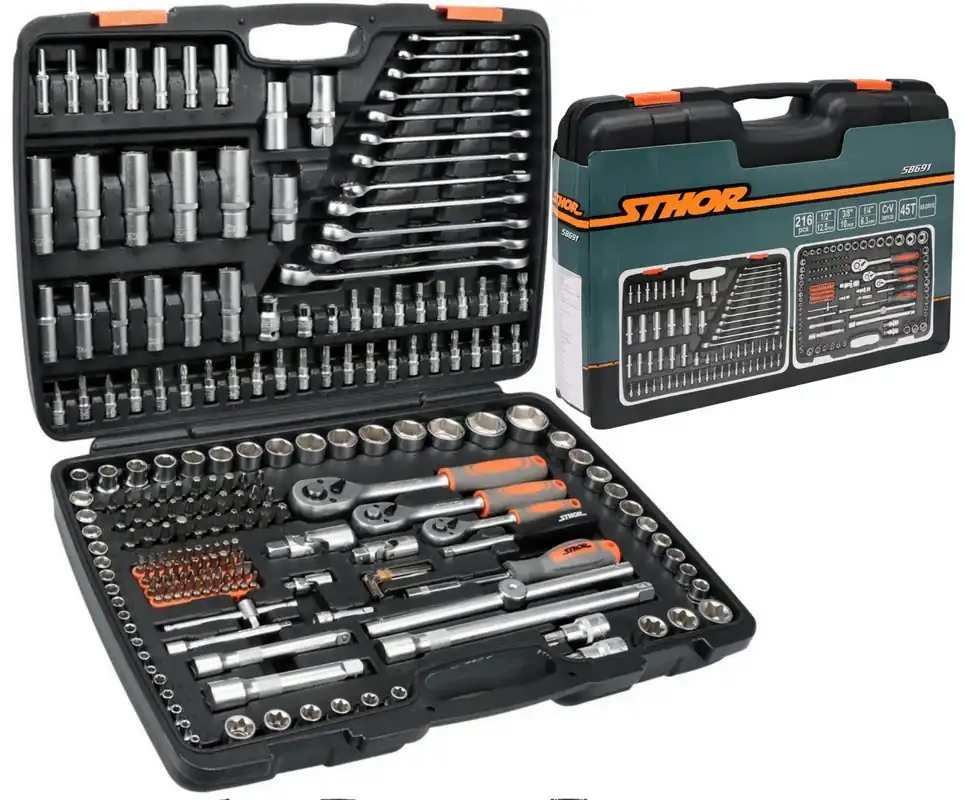 Zestaw narzędziowy STHOR 58691 to 216 narzędzi elementów umieszczonych w wygodnej walizce z tworzywa sztucznego. Narzędzia zostały precyzyjnie wykonane z materiałów zapewniających ich niezawodność.