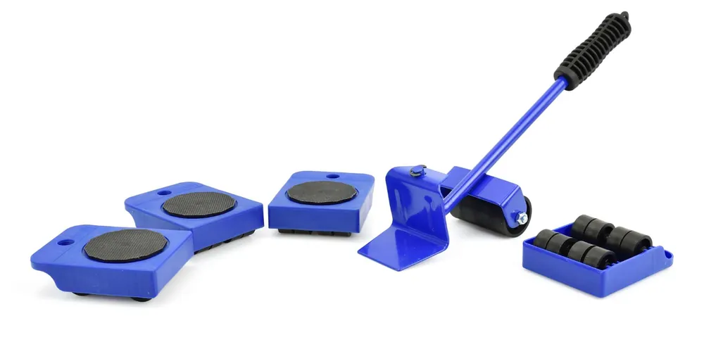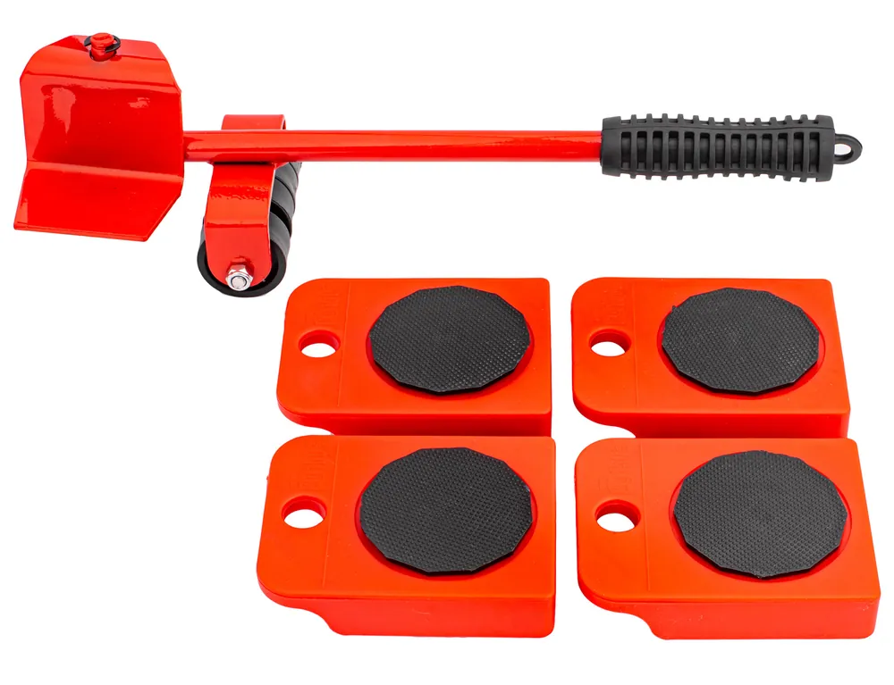 Zestaw podstawek z rolkami przeznaczony do transportu i ustawiania mebli lub innych ładunków o ciężarze do 150 kg.